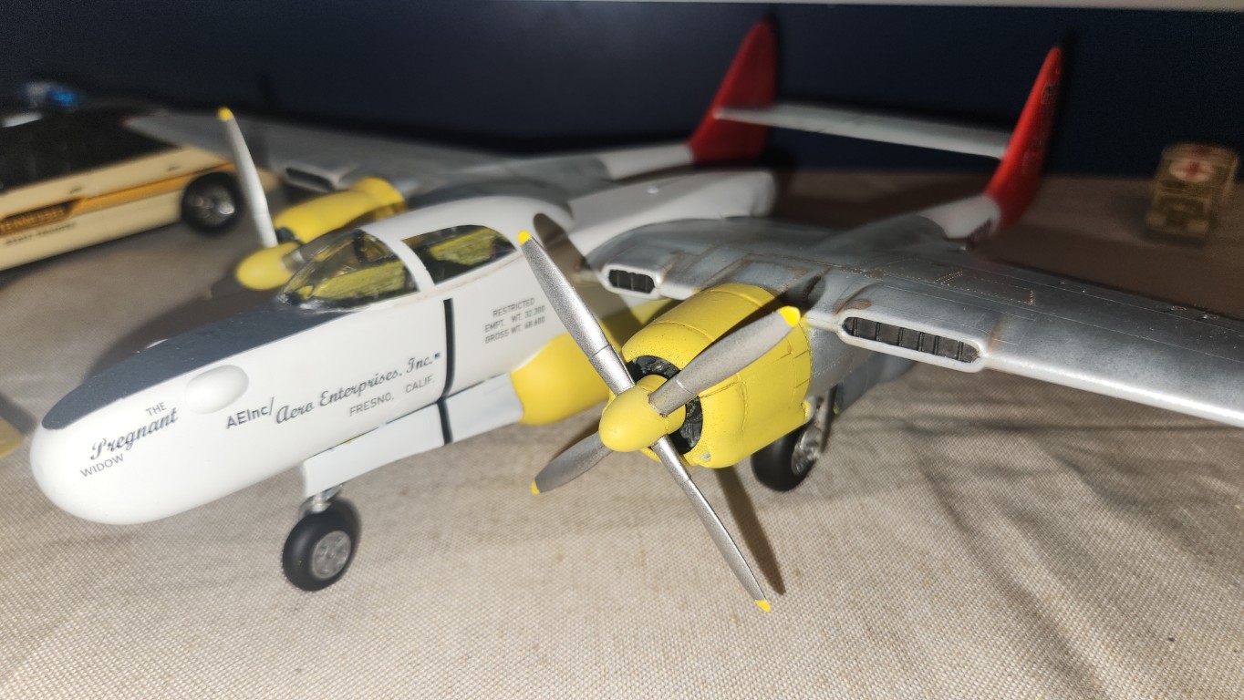 1:48 scale Monogram P-61 Black Widow kit. Modified with scratch built F-15 Reporter conversion.